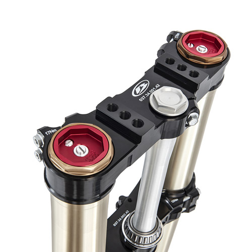 KYB 48mm closed cartridge front fork with a 50mm KYB rear shock with rising-rate linkage system