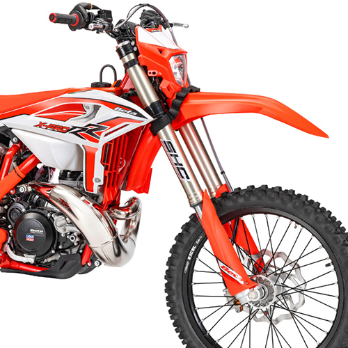 The RR 200 X-PRO chassis set-up and engine are derived from the 125cc, it’s extremely lightweight and features great handling, but with significantly greater torque and power. Oil injection and an electric starter make this a complete bike, just perfect for Enduro enthusiasts.